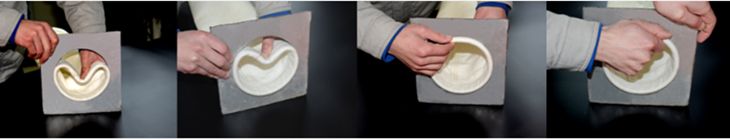 (3)以雙手緊握槽形墊彈簧圈(不需把除塵布袋拉起),雙手把彈簧環圈往里壓使之成“C”形。在保持彈簧環圈成“C”形的同時,放置溝槽形彈簧圈隆起的一邊到O近的花板孔邊。一手握著已裝嵌好的隆起的“C”形彈簧環圈的一邊,另一只手把隆起的“C”形固定在花板邊。